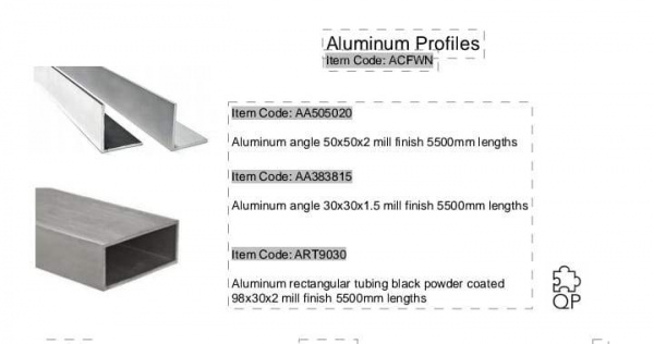 Aluminum rectangular tubing black powder coated 98x30x2 mill finish 5500mm lengths.